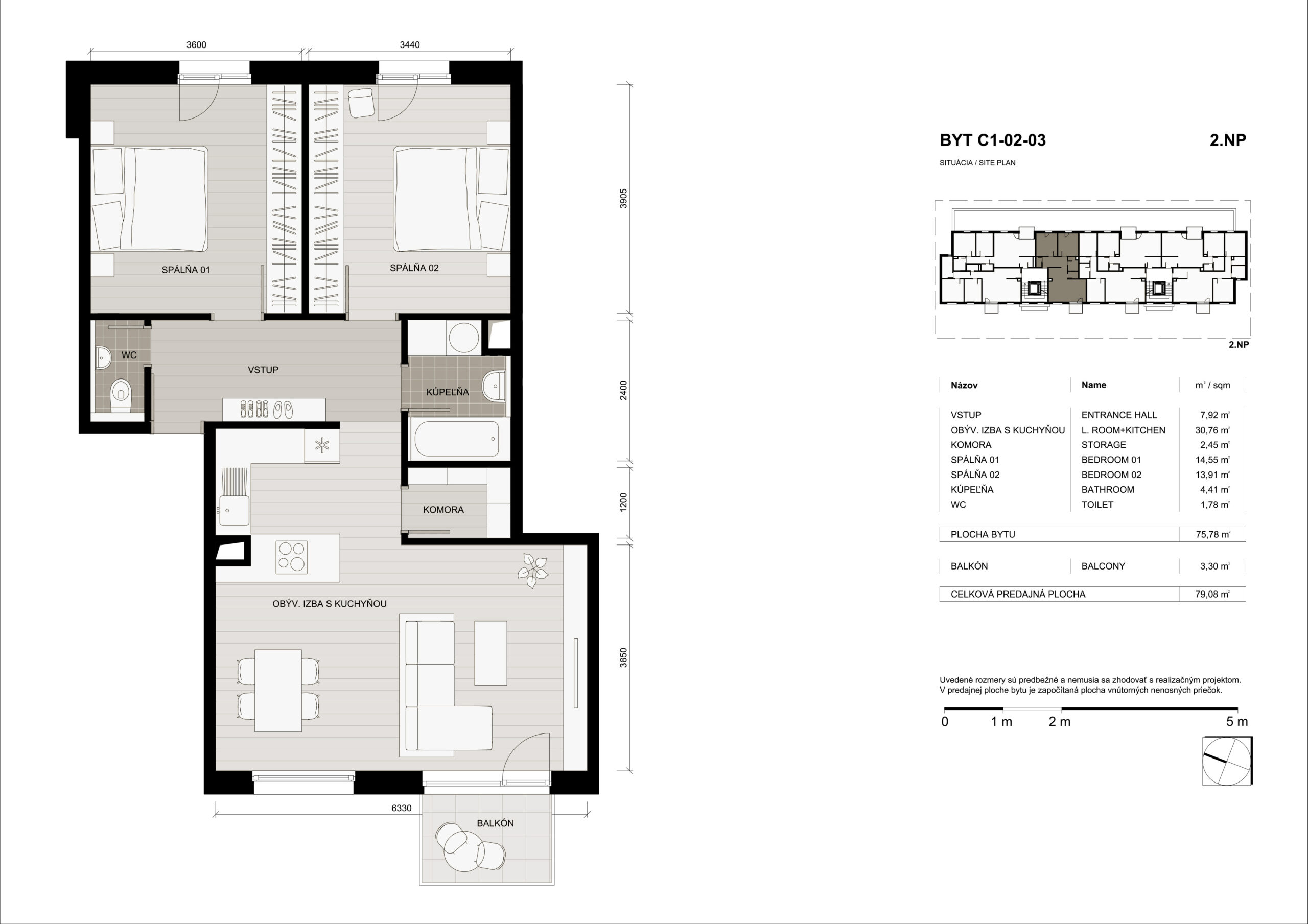 BYT C1-02-03 na 2NP v Domino Parku je ideálnym miestom pre tých, ktorí hľadajú moderné a komfortné bývanie v blízkosti centra mesta. Byt má celkovú rozlohu 79,08 m2 a disponuje 2 spálňami, obývacou izbou s kuchynským kútom, balkónom, kúpeľňou a wc. Bytový dom je vybavený modernými technológiami a ponúka širokú škálu služieb pre rezidentov.