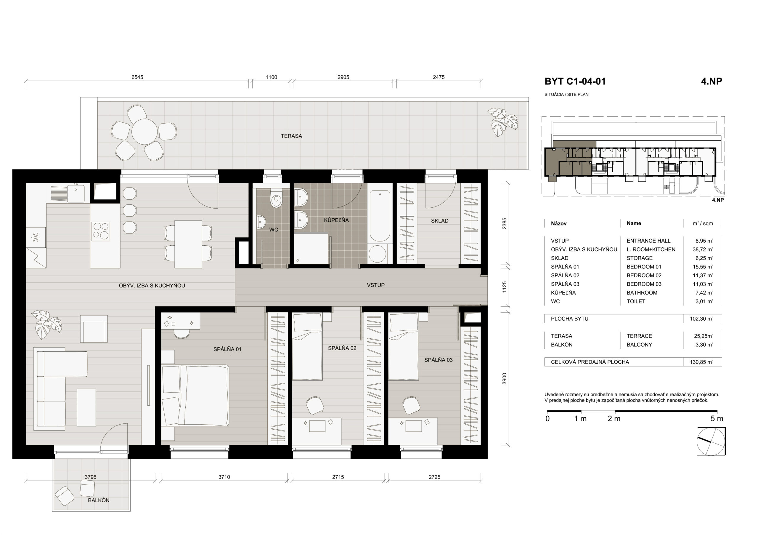 BYT C1-04-01 na 4NP v Domino Parku je ideálnym miestom pre tých, ktorí hľadajú moderné a komfortné bývanie v blízkosti centra mesta. Byt má celkovú rozlohu 130,85 m2 a disponuje 3 spálňami, obývacou izbou s kuchynským kútom, balkónom a terasou, kúpeľňou a wc. Bytový dom je vybavený modernými technológiami a ponúka širokú škálu služieb pre rezidentov.