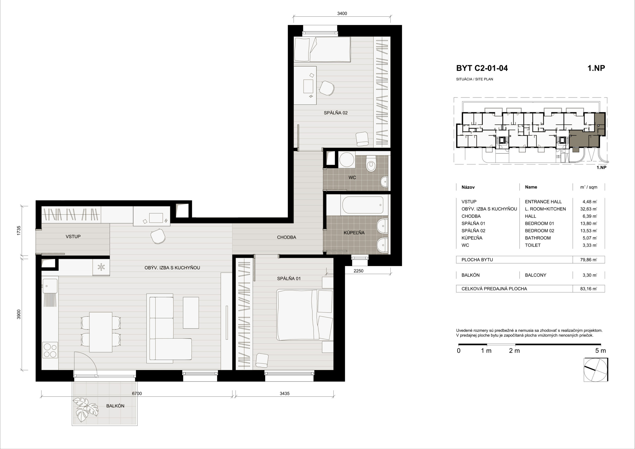 BYT C2-01-04 na 1NP v Domino Parku je ideálnym miestom pre tých, ktorí hľadajú moderné a komfortné bývanie v blízkosti centra mesta. Byt má celkovú rozlohu 83,16 m2 a disponuje 2 spálňami, obývacou izbou s kuchynským kútom, balkónom , kúpeľňou a wc. Bytový dom je vybavený modernými technológiami a ponúka širokú škálu služieb pre rezidentov.