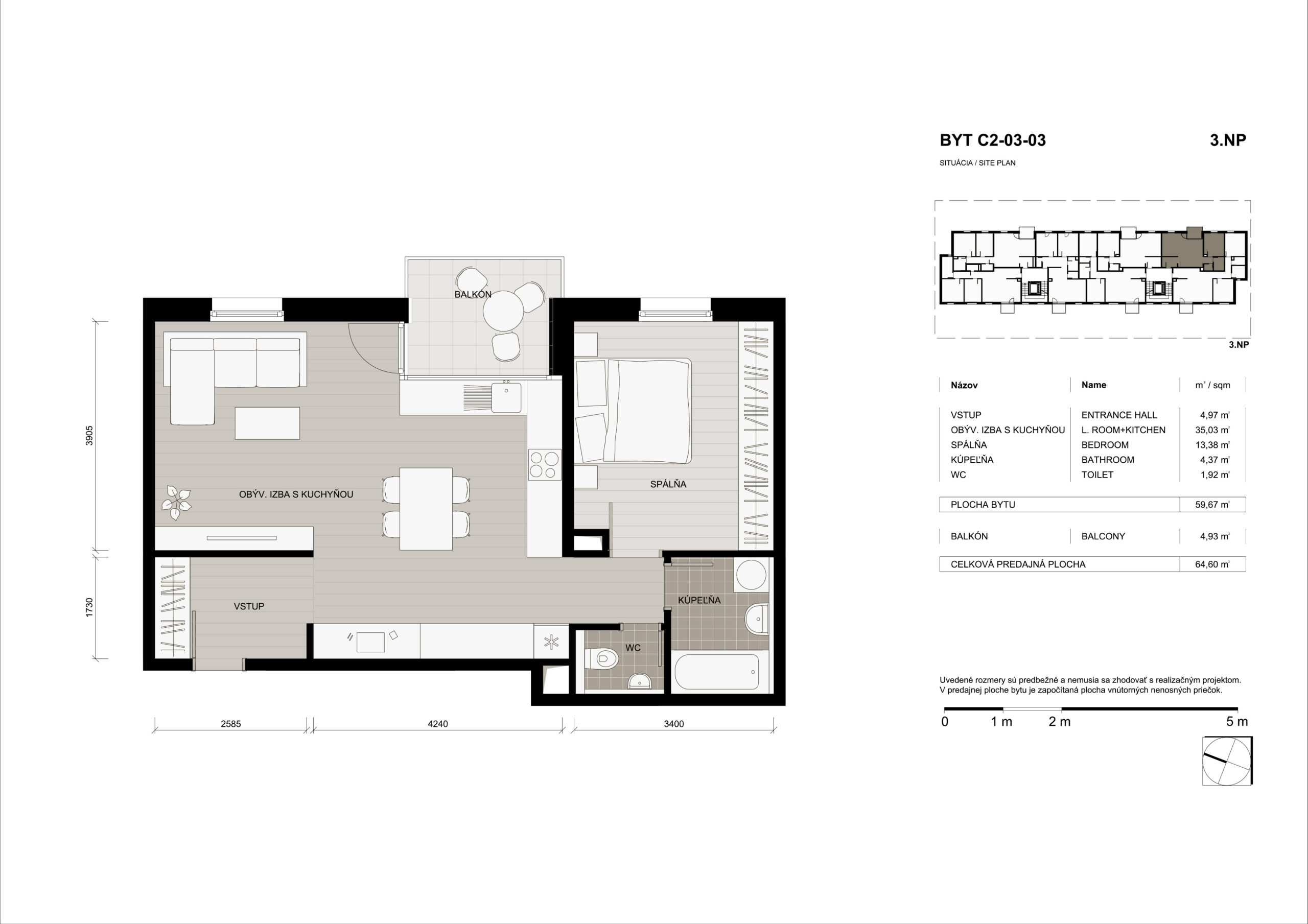 BYT C2-03-03 na 3NP v Domino Parku je ideálnym miestom pre tých, ktorí hľadajú moderné a komfortné bývanie v blízkosti centra mesta. Byt má celkovú rozlohu 64,60 m2 a disponuje 1 spálňou, obývacou izbou s kuchynským kútom, balkónom, kúpeľňou a wc. Bytový dom je vybavený modernými technológiami a ponúka širokú škálu služieb pre rezidentov.